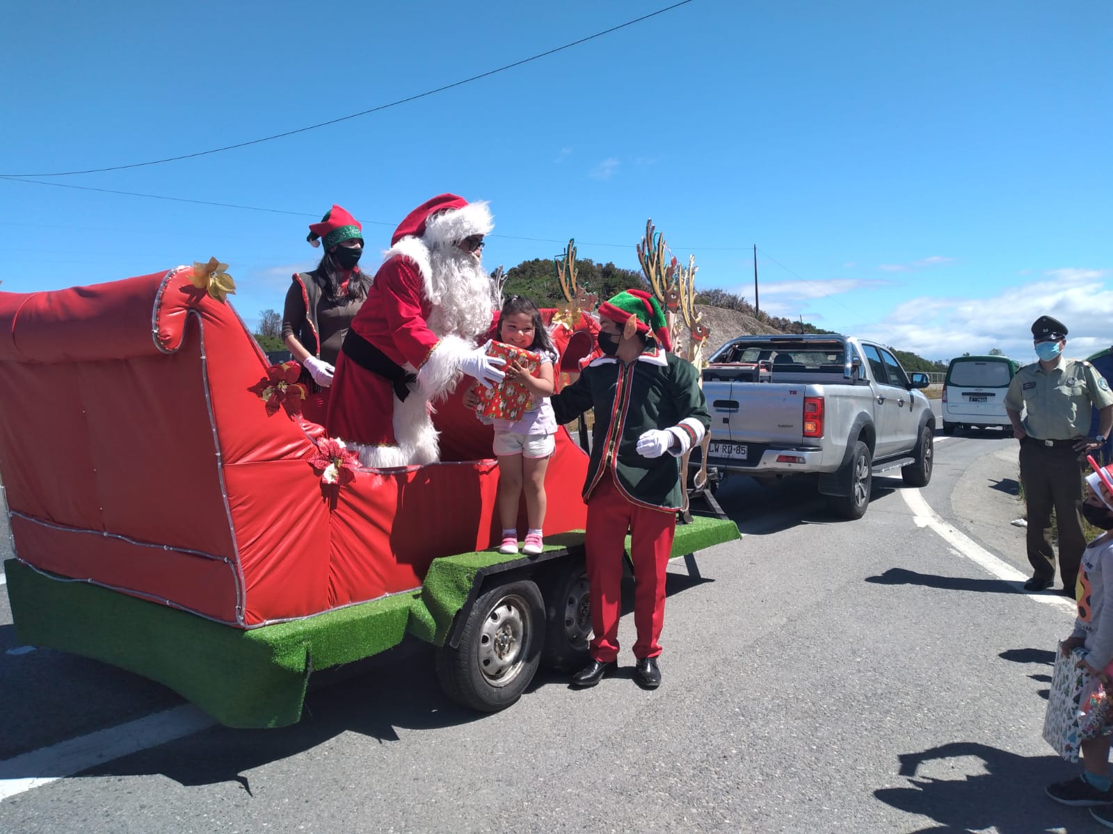 El viejo pascuero pudo recorrer, a través de su propio trineo., los sectores de Los González, Cruce Colaco, El Espinazo, Las Torres, Esquila Alta y Pargua. En su recorrido, pudo entregar múltiples