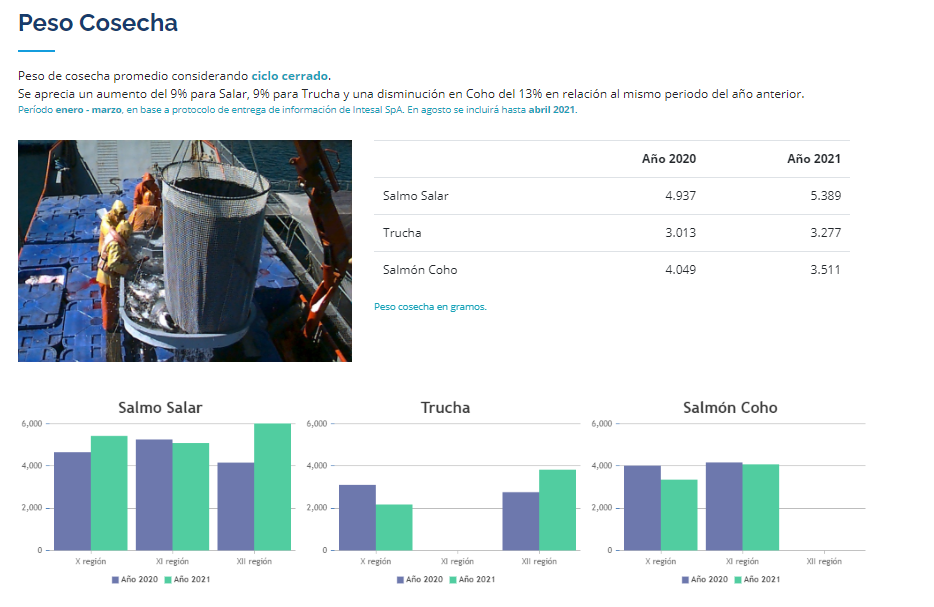 Dentro de la apertura y transparencia de SalmonChile, principios de los que Intesal se hace parte, surge la iniciativa de generar un reporte con información agregada en la web y de actualización periódica, que dé cuenta de algunos ámbitos de la actividad en lo productivo, sanitario, ambiental y exportaciones.